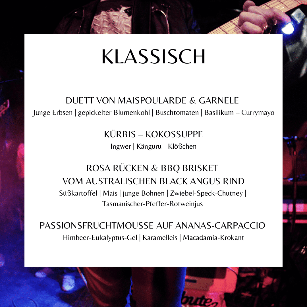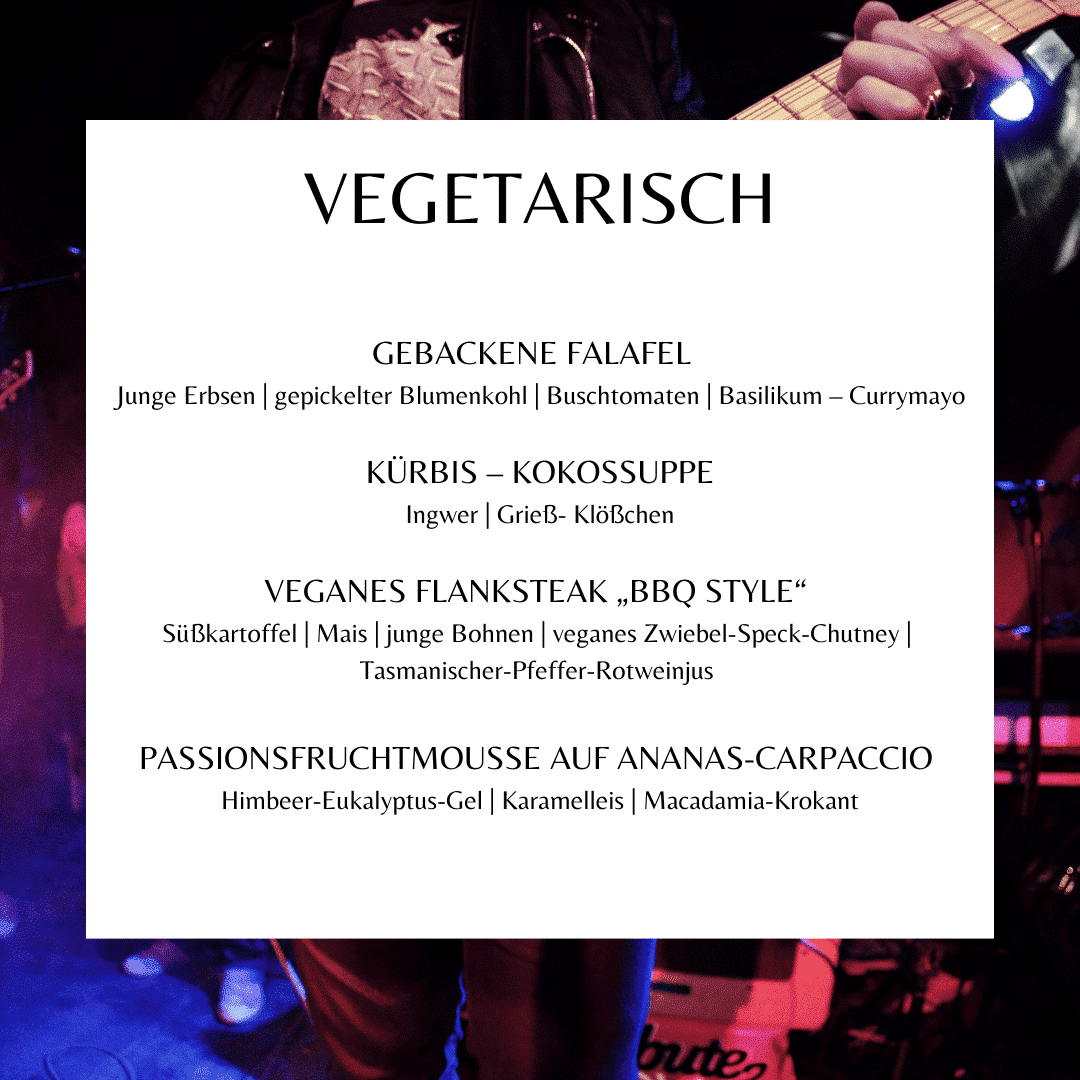 Kulinarisch gibt’s natürlich auch ordentlich was auf die Löffel. Gastgeber Martin Scharff kocht mit seinem Team ein 4-Gänge-Menü mit passenden Spitzenweinen und fetzigen Longdrinks. Und wer jetzt denkt: Rock, 4-Gang-Menü und reine Sitzveranstaltung, das passt doch gar nicht zusammen? Wir wagen den Stilbruch! Genug Platz zum Feiern und Abrocken ist auf jeden Fall da. Seid dabei und lasst uns zusammen das Schloss zum Beben bringen!???