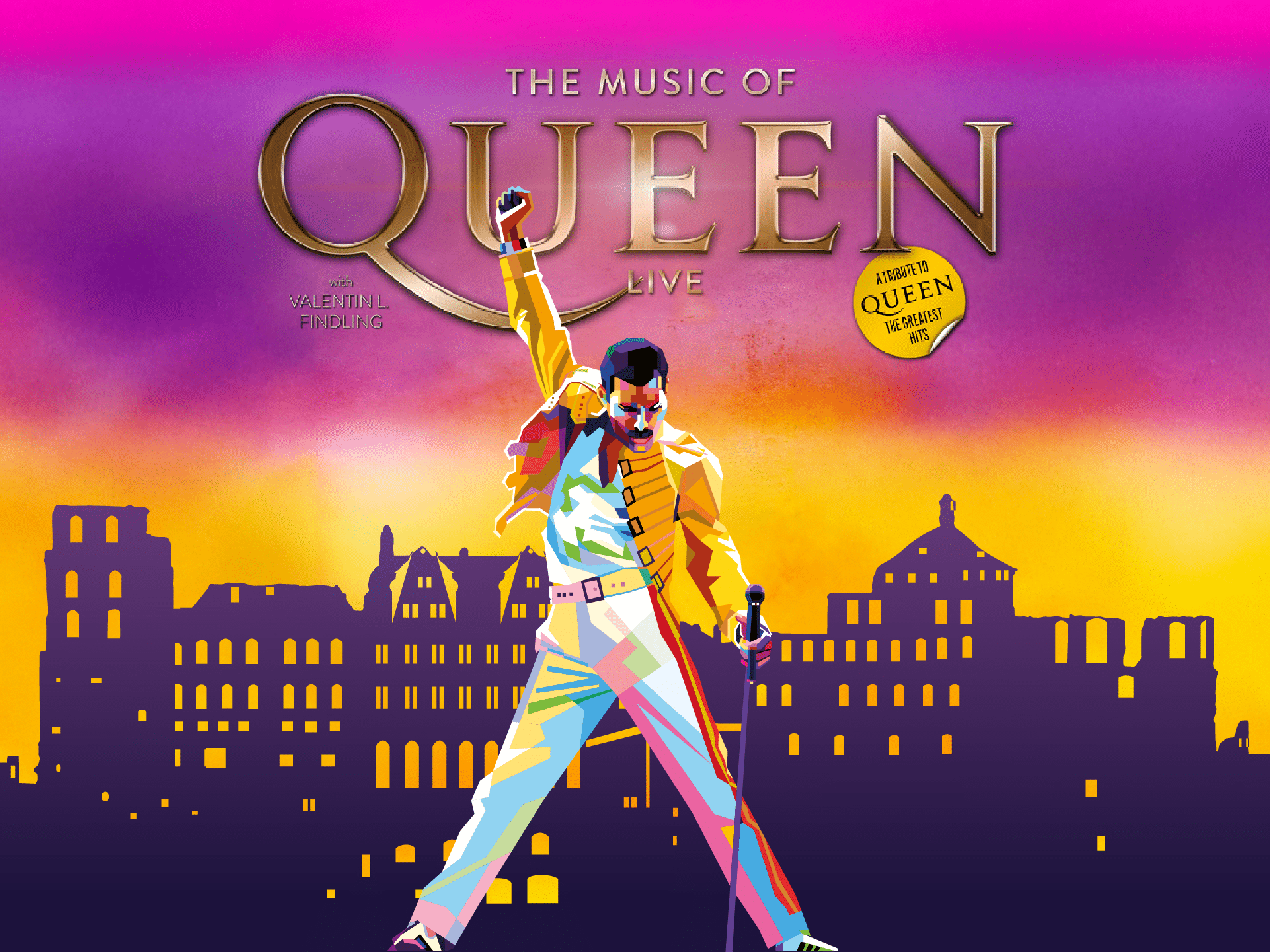 Mit Songs wie Bohemian Rhapsody, We Will Rock You oder Radio Ga Ga bringt die Queen Tribute Band gemeinsam mit Valentin L. Findling die größten Hits der Rockgeschichte zurück – authentisch und doch einzigartig. Begleitet wird er von internationalen Top-Musikern, die bereits auf den großen Bühnen dieser Welt standen.