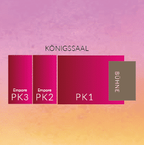 Der Königssaal ist in allen Kategorien mit 6er- und 12er-Tischen bestuhlt. Jeder Gast hat optimale Sicht auf die Bühne und Show. Auch von Parkett 2 und 3 aus, im hinteren Bereich des Königssaals, genießen Sie von unserer Empore einen optimalen Blick auf die Bühne. Gruppenbuchungen werden gemeinsam platziert, je nach Gruppengröße an nebeneinander liegenden Tischen. Bei uns werden Sie sorgfältig von unserem Gästemanagement platziert, bei Fragen sind wir gerne für Sie da. Bitte beachten Sie, dass ausschließlich zusammengehörige Tickets innerhalb eines Parketts gemeinsam platziert werden. Eine Kombination von Tickets aus verschiedenen Parketts ist nicht möglich.
