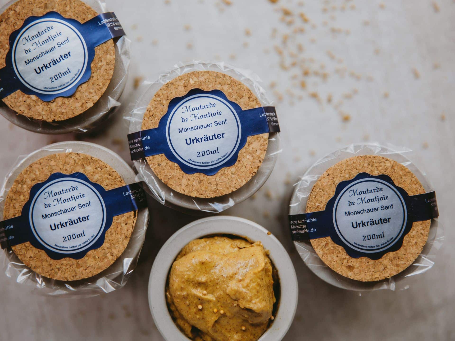 Der Senf im nostalgischen Steintöpfchen wird nach traditionellem Rezept in der über 100 Jahre alten Senfmühle Monschau produziert, ist frei von Geschmacksverstärkern und künstlichen Zusatzstoffen.