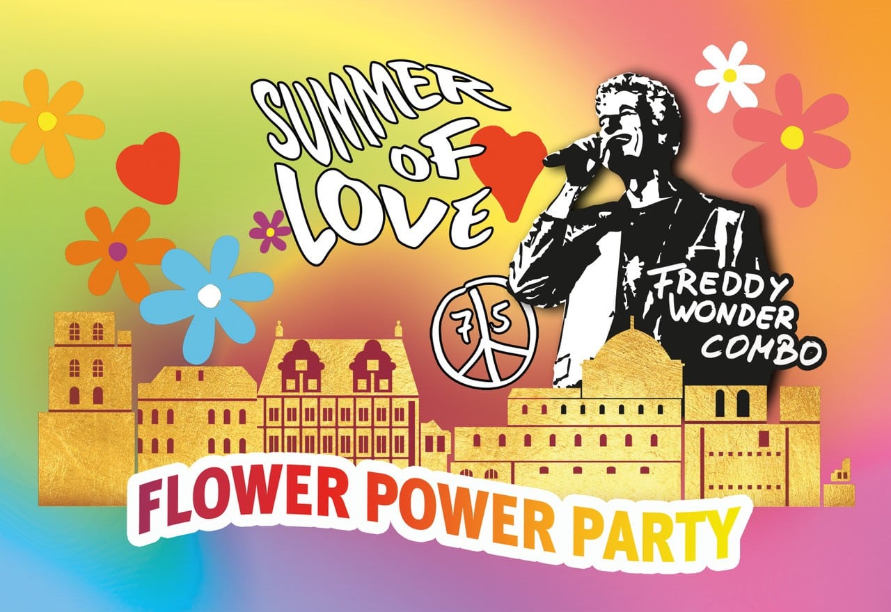 Feiern Sie 75 Jahre Freddy Wonder beim großen „Summer of Love“-Konzert unter freiem Himmel im historischen Schloss Heidelberg. Die legendäre Freddy Wonder Combo entführt Sie musikalisch in die Zeit von Woodstock, Hippie-Kultur und Flower Power!